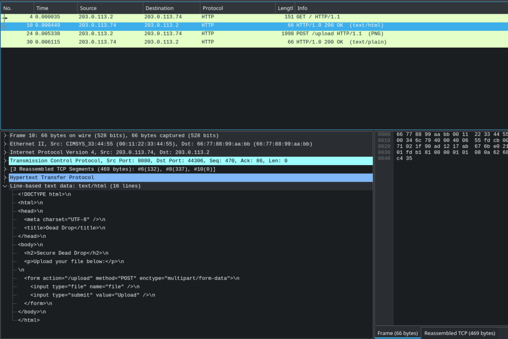 It’s a very simple form for uploading a file. Presumably, that’s what the POST was for. Let’s look at the contents of the POST: