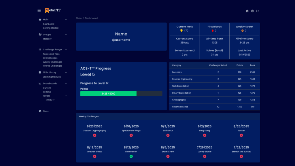 Receive points for completing challenges that contribute towards ACE-T Certification.